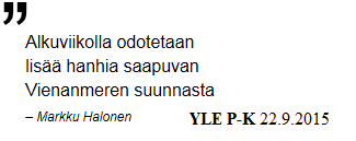 [b]- No onneksi ei maita myöten, sittenhän tässä vasta kusessa oltaisiin![/b] rumasti lohkoo ja yhtä rumasti jos ei vielä rumemmin, vaan jo kuiskutellen jatkaa: [i]- Ihme kun ei siitä riippuliitäjästä mitään että onko joukoissa …[/i]