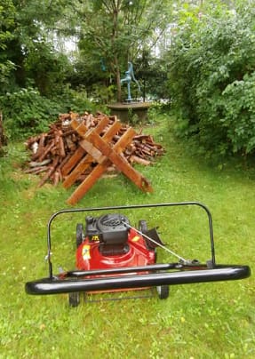 Tuliterä ruohonleikkuri se tuolla kaivolla seisoo hiljentyneenä Tervatun Pukin luona, sulassa sovussa ovat ja – kuhertelevat.
