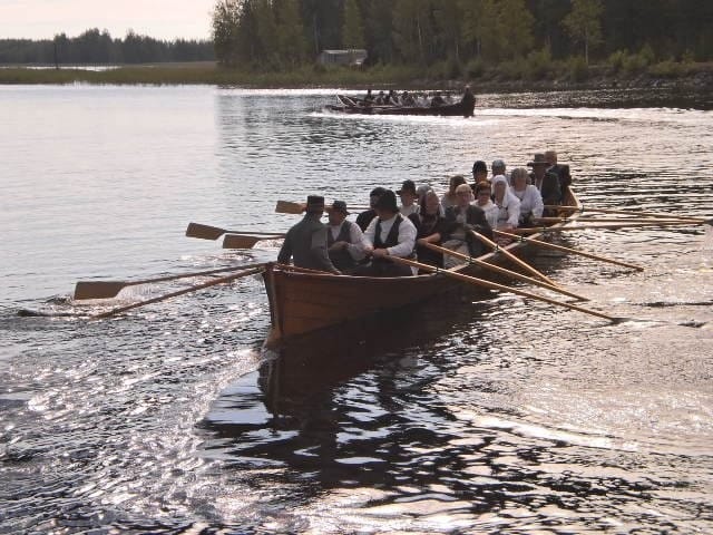 Oikein kepit pystyssä ovat taas menossa jonnekin toiselle puolelle pitäjää läimäyttelemään, vaikka tosiasiassa kirkkoon soutavatkin papille lähtöloitsuja veisailemaan.