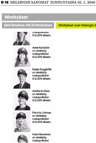 Ei vaan näistä [b][url=http://roskatonvantaa.fi/roskapoliisit]10 roskapoliisinimityksestä[/url][/b], joista Vantaan Energia sunnuntain (10.1.2016) Hesarissa ilmoitti.