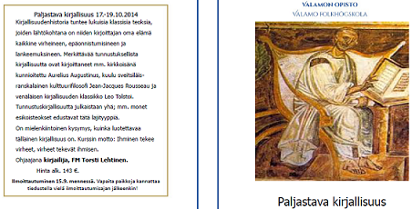 [b]Torsti Lehtisen[/b], tuon todellisen monitietäjän [i][url=http://www.valamo.fi/ikoniakatemia/event/364-paljastava-kirjallisuus.html]Confessiones[/url][/i]-kurssi on nyt takana ja aihe valjaissa, [b]Augustinukset[/b] ja [b]Leinot[/b] läpikäytyinä. Sillä, tiedolla, voikin sitten ajattaa itsensä jälleen tähän aikaan ja elämään, pois sieltä luostarin tapahtumattomuudesta takaisin rajuun elämään oksentelemaan, Paratiisiin pyllistelemään.