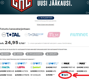 Tarttuu kaukosäätimeen, sillä näppäilee numerot, tilaa puolen vuoden paketin ensinälkään.