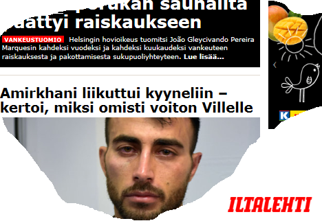 [i]- Eipähän tuolla ollut ollut muita tuttuja kuin[/i] [b]Eini[/b], tuumailee ja tankkaa nimiä. – Tai tuo yksihän oli [b]BB[/b]:ssä juontamassa. Joku metro vai mikä se oli, onneton. Siitä ei sodassa olisi juuri apua täyspakkaus selässä, tuupertus siihen paikkaan … Pahalle päälle on päivänsankari muuttumassa, tuommoisia jo purppasee. Siirtyy Iltalehtiin heti näin aamutuimaan. [b]UFC[/b] – eipä hyvää tiedä. Torven täydeltä alkaa totinen toitotus: [b]- Amarkaami, Amalgaami, Amerikaani … Kyyneliin liikuttunut.. . Ja toinen hyvä Packal …Mitä hiton urheilua tuokin! Tieten tahtoen toisiaan potkivat, sitten lääkäriin aikoja mummoilta syövät…[/b] Aikansa ähkii, kuin potalla. Ei eipä sillä: kylläkyllä hän voimaan uskoo – hakee viikon uutista sitä missä ilmoitettiin [b][url=http://www.iltasanomat.fi/nyrkkeily/art-2000001127069.html]Kokkosen Pekan[/url][/b] lähteneen tuonne ylisiin. Vaan mennä nyt tieten tahtoen tosiaan toisiaan monottamaan! [b]- Urheilun sietoraja kulkee siinä[/b], jyrähtää aikansa elänyt, ajasta jäänyt ja jämähtänyt vähemmän aktuelli intellektuelli Vanhan Liiton Mies, VLM UFC:stä ja [url=http://www.iltalehti.fi/viihde/2016022421157886_vi.shtml]ennakkoon[/url] myös [url=http://eurovisionworld.com/?eurovision=2016ukraine]UMK[/url]:sta.