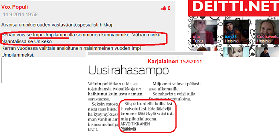 Kunnanvaltuutettu [b]Arvo[/b] tämän päivän Laakkosessa ja City-lukijani [b]Vox Populi[/b] [url=http://www.city.fi/blogit/hikkaj/vakisinlukijoille/128004]kommentissa[/url] 11 ovat samalla asialla, melkein.