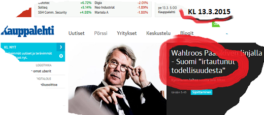 Sitä paitsi [b]Seppäsen Esko[/b] samaisessa lehdessä viikolla kertoi [b]BW[/b]:n [url=http://www.kauppalehti.fi/uutiset/wahlroos-ei-muuttanut-ruotsiin-verojen-takia/nHktGHTm]todellisen syyn[/url] Ruotsiin muuttoon: Turvapaikka. Puolen miljoonan verosäästö hänen rahoissaan ei ole raha eikä mikään – sitä hiekkaa.