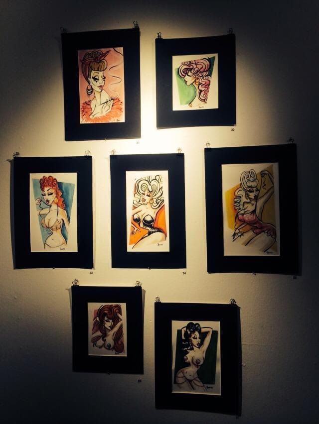 Molly on taiteilijana hyvin moniulotteinen. Hän esiintyy laulajana ja burleskiesiintyjänä, ja sen lisäksi hän on visuaalinen artisti eli hän piirtää ja maalaa taideteoksia. Nyt Mollyn taidetta on koottu yhteen, ja näet läpileikkauksen hänen tuotantoonsa Tiketti gallerian näyttelyssä. Kuten olette Mollyn omasta [url=http://www.pinupgarage.fi/blog/burlesque-coloring-book]blogista[/url] saaneet lukea, häneltä on juuri ilmestynyt Liken kustantama Burleski-värityskirja, joka on myös myynnissä galleriassa.