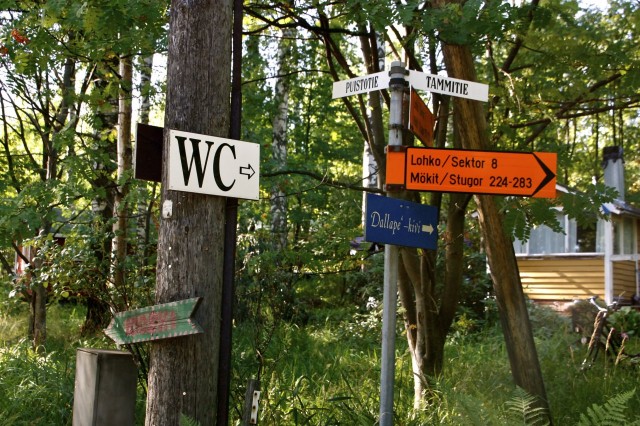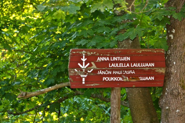 Istun jonkin aikaa paikoillani. Katselen lintuja ja kuuntelen hiljaisuutta, kunnes palaan metsäpolulle. Luontopolku päättyy pian ja se kaartaa takaisin lähtöpisteeseen. Samoilen vielä jonkin aikaa tunnelmallisten kesämajojen välissä kulkevilla poluilla ja haaveilen omasta puumökistä. Tällainen omaa kotia lähellä oleva mökki olisi kyllä täydellinen rentoutumispaikka.