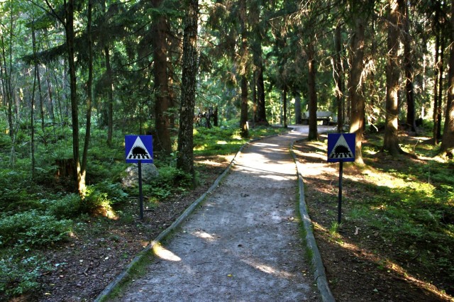Jatkan matkaani ruokailun jälkeen kohti aiemmin ohittamaani luontopolkua. Löydän selkeät opasteet ja seuraan niitä. Saavun aukiolle, josta luontopolku alkaa.