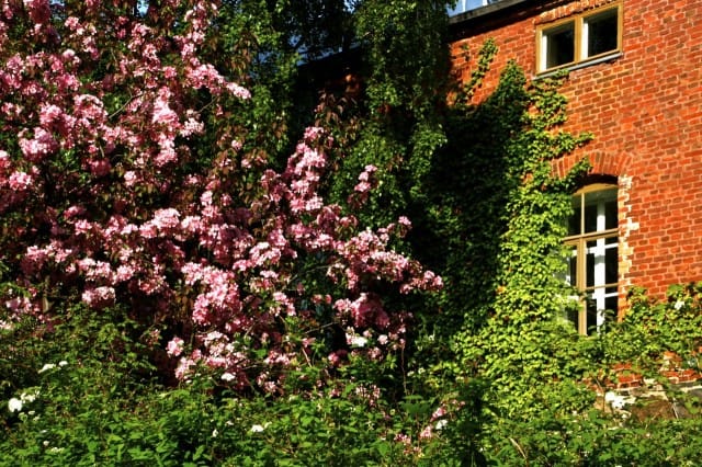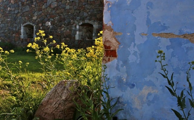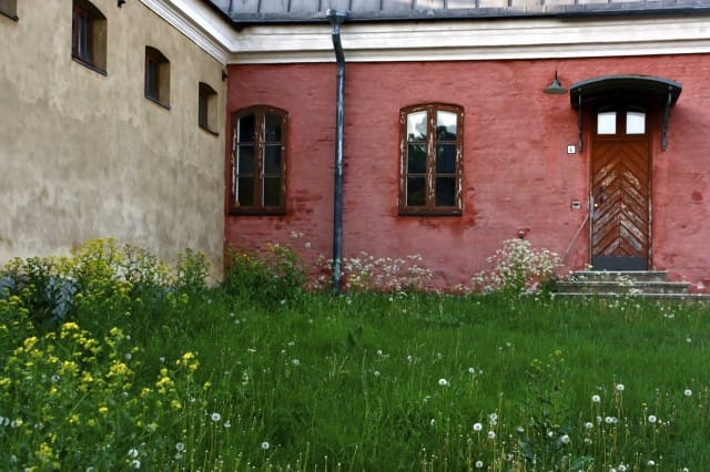 Astun ulos lautasta. Suuntaan rakennuksista muodostuvan oven läpi ja jatkan samoilua. Kiertelen saarta ristiin rastiin ja ihastelen pastellinvärisiä puutaloja, punatiilirakennuksia ja kukkapeltoja. Taivas on sininen ja paikka kaunis. Kävelen muurien reunustoja ja etsin itselleni rauhallista, salaista paikkaa, jossa voin ottaa kirjani esille ja maistella mansikoita. Njam. Paikka löytyy ja päätän istuskella siinä kallionkolossa ja vain nauttia olostani. Mansikat eivät pidä nälkää kovin pitkään ja lähden etsimään ravintolaa.