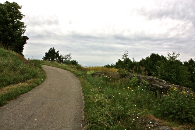 Kahvittelun jälkeen matka jatkuu. Tie kaartaa hieman vasemmalle, loivaan ylämäkeen. Sieltä löydän etsimäni tien, Pekka Jokipaltion tien. Kävelen loivaa ylämäkeä pitkin varsinaiseen määränpäähäni, [url=http://fi.wikipedia.org/wiki/Taivaskallio]Taivaskallio[/url]lle.