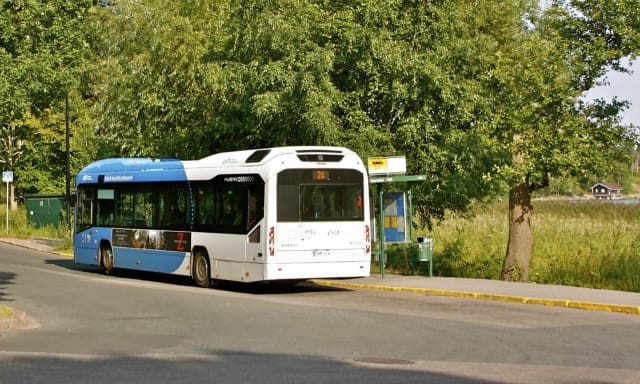 Jokaisen pysähdyksen aikana ajaneuvon moottorit hiljenevät. Epäilyttävästi vaikuttaa, että bussin moottori sammuisi. Kyseessä on kuitenkin vain vähäpäästöisempi hybridibussi. Joukkoliikenteen kannattamisen lisäksi matkustan nyt myös bussilla, joka on tavallista bussia vihreämpi vaihtoehto. Loistavaa!