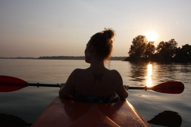Juon kahvin ja syön palan mustikkapiirakkaa kermavaahdolla. Huomaan, että Regatassa vuokrataan myös soutuveneitä ja kajakkeja. Mikäs olisikaan parempi päätös tällaiselle ulkoilupäivälle kuin pieni melontaretki?