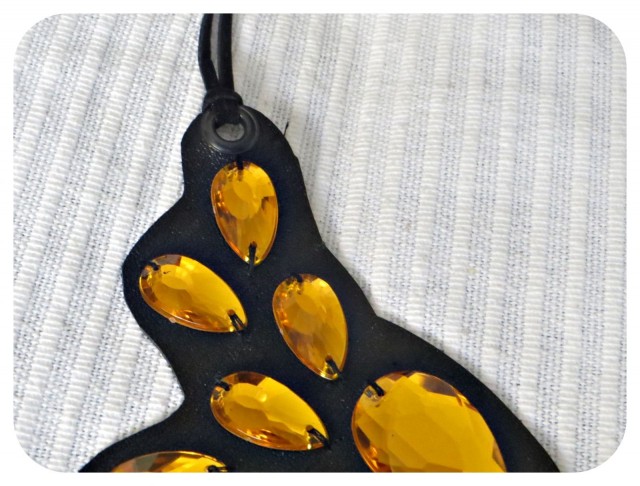 Liimaa nahkanauhojen päihin kiinnittimet joihin kiinnitetään ketju lukkoineen. Valmis.