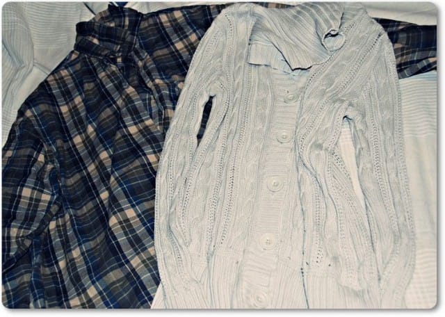 Sukelsin jälleen lumppulaatikkoon josta kaivoin kaksi vanhaa paitaa. Toinen miesten flanellipaita ja toinen naisten puuvillaneule. Molemmat parhaat päivänsä nähneitä. Ensin pesua ja nukanpoistoa flanellista, puuvillaneule oli vain harmaa, enkä sitä…