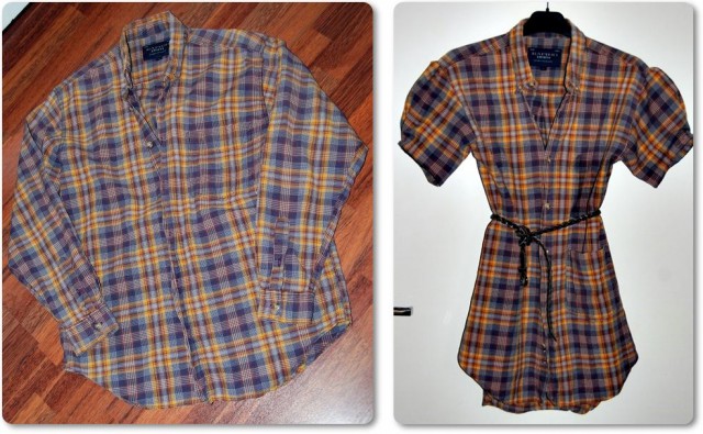 Mitä kaikkea saakaan miesten vanhoista paidoista? Oikeasti ihan melkein mitä vain pannualusista muotiluomuksiin. Omani tosin on vain muokkaus. Hihat muotoilin uudelleen, kavensin nauselle sopivammaksi sekä alensin taskua. Toimii ihan hyvin…