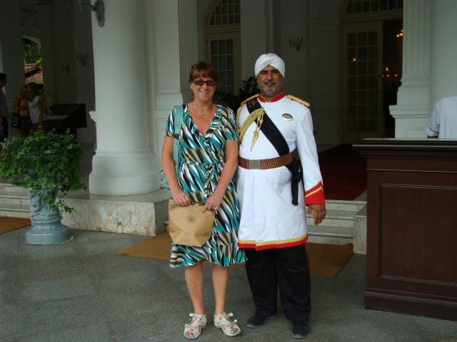 Britti-imperiumin ajan loistosta saa hyvän kuvan piipahtamalla kaupungion perustajan Sir Stamford Rafflesin mukaan nimetyssä upeassa Raffles-hotellissa, mikä sijaitsee aivan kivenheiton päässä jokirannasta. Hotellin alueelle ja puutarhaan, museoon, aulaan, pariin baariin sekä lukuisiin kauppoihin on vapaa pääsy ja hotellin portsarin kanssa poseeraaminen on melkein jokaisen turistin pakko tehdä.
