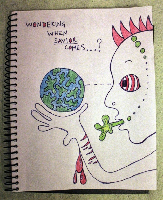 Aloin tänään piirtämään. Ajattelin pitkään ettei piirtämisestä mitään tulisi, mutta kai siitä tulikin. Jotain. Koskakohan pelastaja saapuu ihmiskunnan eteen ja näyttää miten täällä tehdään? Hullu perfektionisti. Hän ei aina pidäkään…