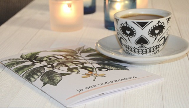 Mustana-blogin Hanna julkaisi viikko takaperin Kahvista-vihkon, josta löytyy opit laadukkaan kahvin valmistamiseen. Kahvivihko löytyy esim. Helsingin kahvipaahtimolta, Kaffa Roasterylta, Kuppikuumaa.fi:stä, Johan&Nyströmiltä, Good Life Coffeesta ja Lasipalatsin Caffista, josta minä kävin oman oppaani ostamassa.