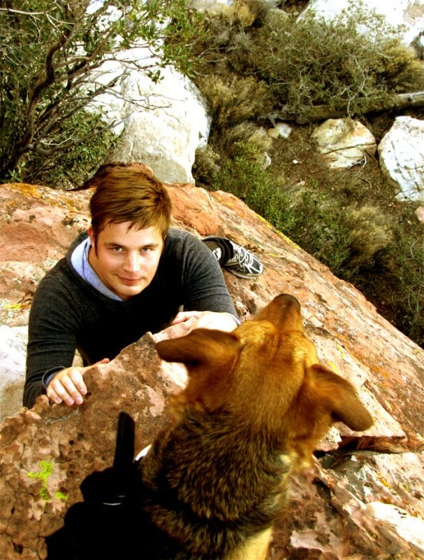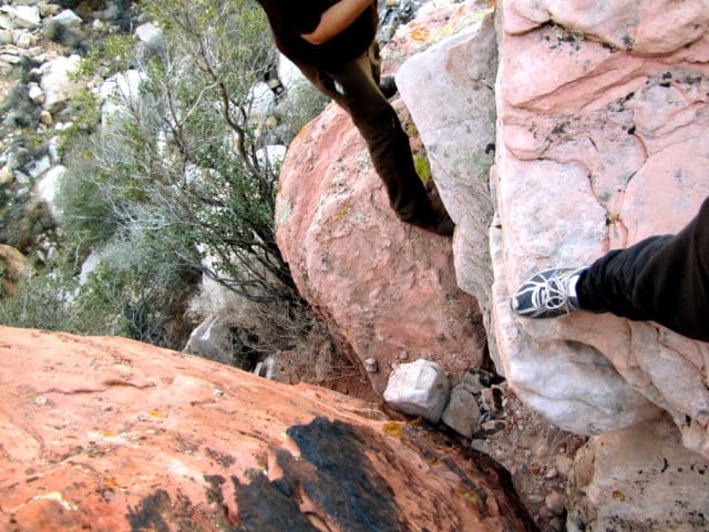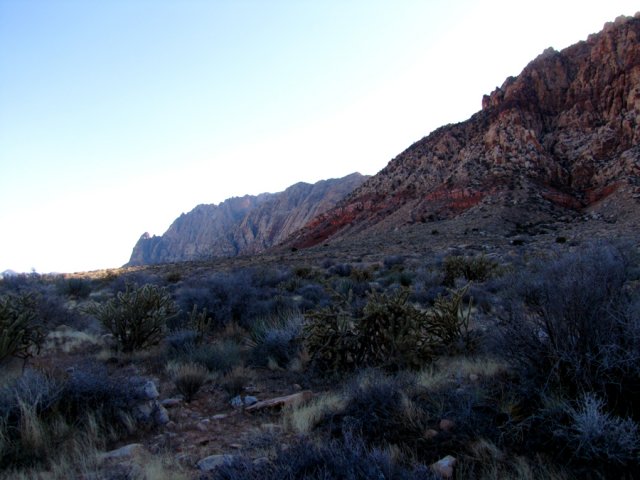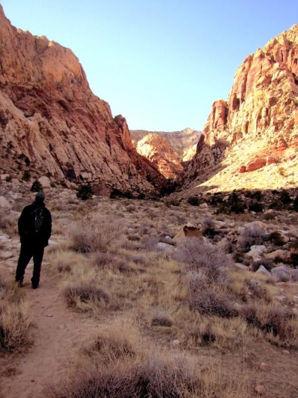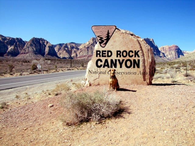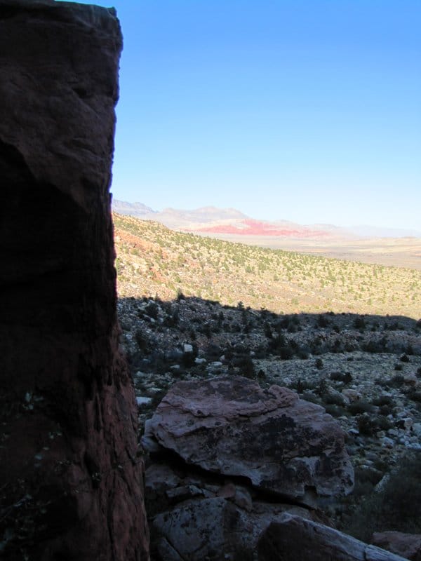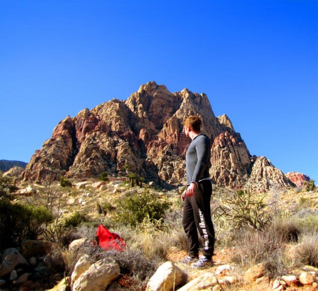 Pelasin myös muutaman sivuturnauksen lisää ilman minkäänlaista menestystä, ja tämänkertaisten reissutappioiden ylitettyä 6000 dollarin rajan päätin pitää maanantaina välipäivän. Sen sijaan, että olisin kierrellyt kaupoissa ja kasinoilla päätin lähteä patikoimaan ja kalliokiipeilemään Red Rock Canyoniin, joka sijaitsee aavikolla noin puolen tunnin ajomatkan päässä Vegasista. Kuten 127 tuntia meille opetti, yksin suuressa tyhjyydessä kiipeileminen ei ole koskaan hyvä idea. Sain onnekseni seuraksi entisen sotilaan, nykyisen pokeriammattilaisen Alexin ja tämän Broadway-koiran (broadway muuten tarkoittaa pokerissa korkeinta mahdollista suoraa). Alex ja Broadway käyvät samoissa maisemissa useamman kerran viikossa kiipeilemässä.