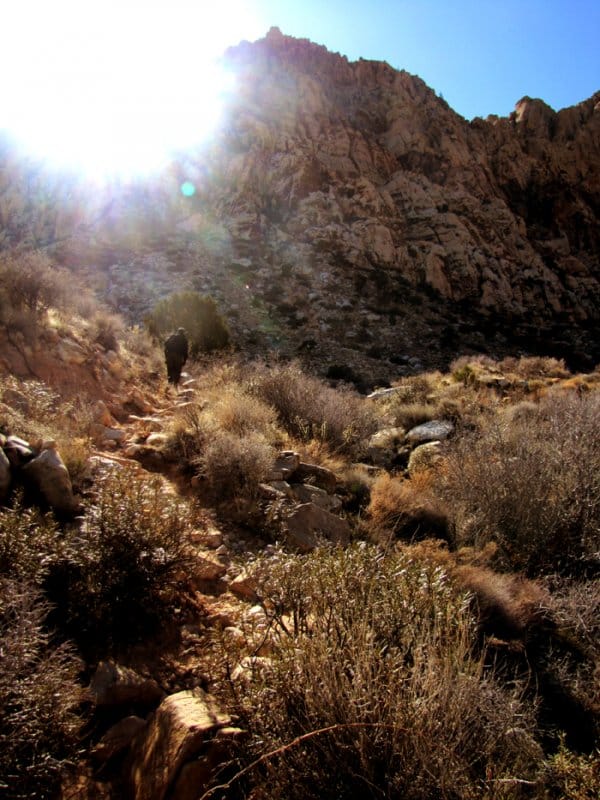 Rutikuivaa aavikkomaisemaa piti kävellä hyvän matkaa, ennen kuin pääsi edes kanjonin suuaukolle. Joillekin tällainen maisema olisi varmasti yhtä painajaista, mutta henkilökohtaisesti mieleni lepää tällaisessa hiljaisessa kuivuudessa enemmän kuin missään muualla. Vain Broadwayn läähätys rikkoi täydellisen hiljaisuuden, mailien säteellä ei varmasti ollut ketään muuta. Jossain tuli vastaan irrallinen, puoliksi syöty peuranjalka.