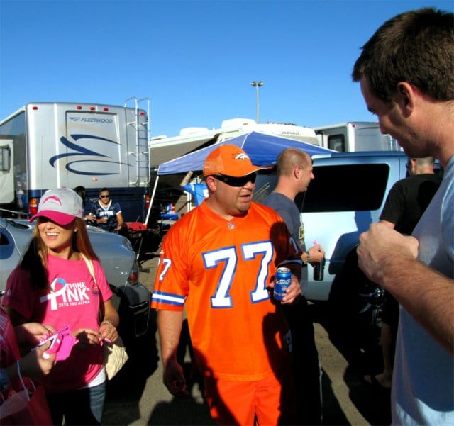 Tätä kutsutaan tailgatingiksi. Jenkit pyhiinvaeltavat näihin otteluihin edelisenä iltana ja pystyttävät asuntovaunuautonsa niin lähelle stadionia kuin mahdollista. Muut tailgateajat liittyvät seuraan, ja sitten grillataan ja juodaan kaljaa. Ne, jotka eivät tule kauempaa, menevät kuitenkin stadionille tuntikausia ennen pelin alkua hengaamaan muiden tailgateajien seurassa. Ennen kauden huipennusta eli Super Bowlia paikalle tullaan jopa kolme päivää ennen itse ottelua.