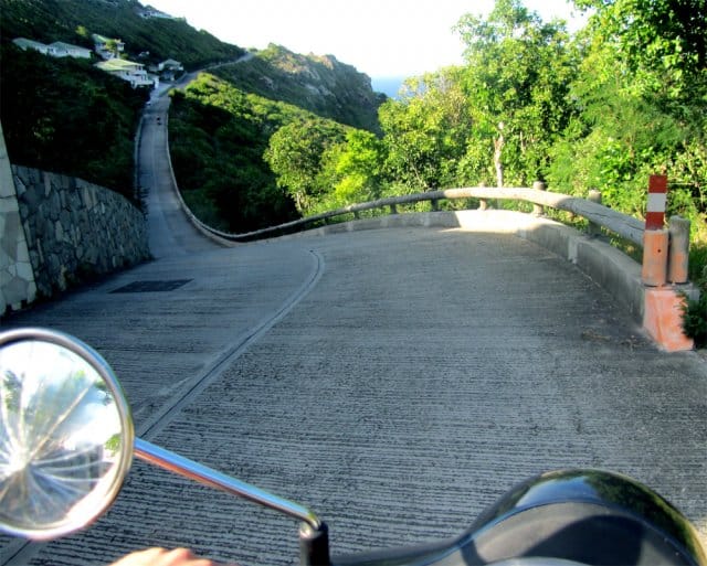 Minulla ei ole koskaan ollut suurempaa tarvetta omistaa autoa, enkä haaveile käyttäväni pokerivoittojani Ferrareihin. Kaksipyöräisiin minulla on sen sijaan aina ollut jonkinlainen fetissi. Minulla ei ole sen kummemmin ajo- kuin mopokorttiakaan, mutta onneksi useimmissa Aasian paikoissa ja esimerkiksi Meksikossa ei paljon kysellä niiden perään vaan skootterin saa vuokrattua helposti pelkällä passilla. Olen jo pitemmän aikaa suunnitellut parin viikon moottoripyöräretkeä jossain Thaimaa-Kambodza-Laos-Vietnam-akselilla, mutta tällä haavaa pelkkä 60 kilometriä tunnissa kulkeva skootterikin auttaa pahimpiin vieroitusoireisiin. Ainoana ongelmana on sen vuokraaminen, sillä täällä ökysaarella vuokraamot eivät varmasti halua ottaa minkäänlaisia riskejä. Meillä käy kaikkien aikojen tuurit, kun menemme vanhan pariskunnan pitämään vuokraamoon, jossa päivystävä viisikymppinen nainen (jonka päivän ainoat asiakkaat epäilemättä olemme) erehtyy epähuomiossa kysymään korttia vain kaveriltani mutta antaa meille kuitenkin kaksi pyörää. Ulkopuolella yritän hoputtaa kaveriani lähtemään pihasta mahdollisimman nopeasti, ennen kuin myyjä huomaa virheensä. Ihmettelen vähän, kun joudun opettamaan kädestä pitäen miten ajopeli laitetaan päälle. Myöhemmin selviää, että kaverini ei ole koskaan edes ajanut kaksipyöräisellä, muttei viitsinyt mainita asiasta. Onneksi skootteri on aika helppo vempain ajaa ja päivästä selvitään parilla pakoputken aiheuttamalla palovammalla ja naarmuuntuneella peilillä.