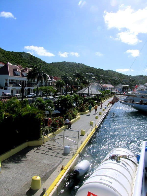 Laiva heittää meidät saaren keskustaan Gustaviaan. Kadun nimi on Kungsgatan ja salossa on Ruotsin lippuja. Hetken ihmettelyn jälkeen selviää, että olemme vanhassa Ruotsin siirtomaassa, joka tosin nykyään kuuluu Ranskalle. Saarella on alle 4000 asukasta, ja paikan puhelinluettelo koostuu etupäässä rikkaista julkkiksista piilopirtteineen. St. Bartsilla ei ole kansainväliset mitat täyttävää lentokenttää, eikä tänne muutenkaan pääse kovin helposti. Koko Gustavia on aivan autio, tiet ovat autioita, rannat ovat autioita. Yhtään turistia ei näy missään. Meillä on vain päivä aikaa, ja alkuperäisen taksisuunnitelman sijaan päädymme vuokraamaan skootterit. Tämä osoittautuu koko reissun parhaaksi ratkaisuksi.