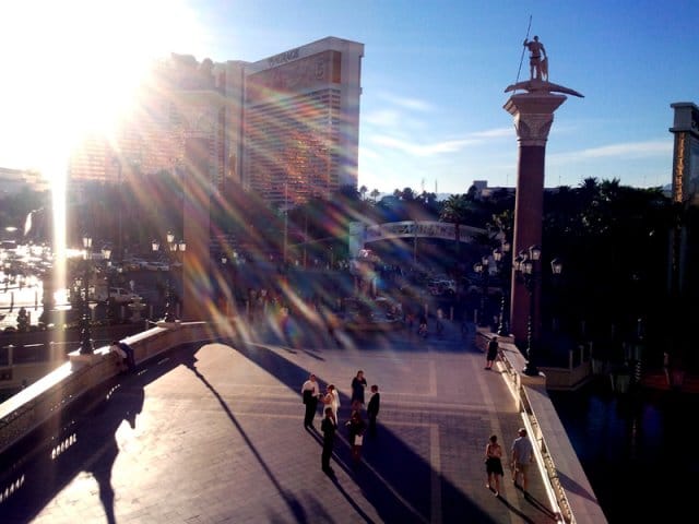 Herään puoliltapäivin siihen, kun siivooja tulee puoliväkisin ovesta sisään. Olen unohtanut laittaa do not disturb-lapun oveen. Luulen hetkellisesti, että huoneeseeni yritetään murtautua. En myöskään ensin muista, missä edes olen. Päästän epämääräisiä huutoääniä ja siivooja perääntyy hämmentyneenä ovesta ulos. Ajatukseni selkiytyvät ja tajuan olevani Vegasissa. Nukuin univeloistani ehkä 20 prosenttia pois, mutta Vegas saa minut piristymään välittömästi. Ponnahdan sängystä ylös, käyn nopeassa suihkussa, pesen hampaat ja otan taksin kohti Venetiania.