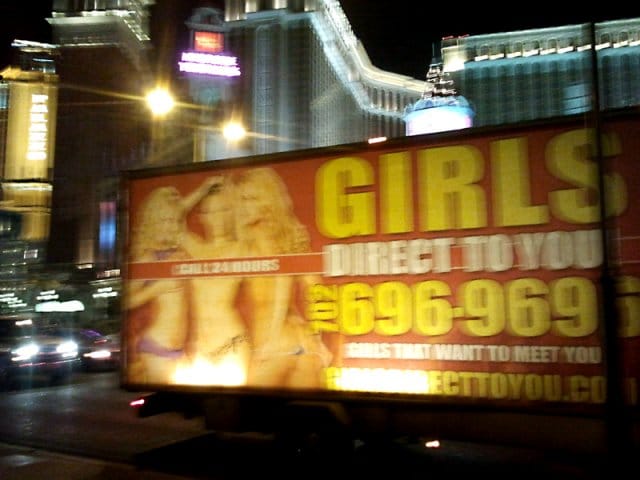 Harkitsen taksin ottamista, mutta jono on pitkä ja olen niin väsynyt, että puheliaiden taksikuskien juttujen kuunteleminen tuntuu äärimmäisen ikävältä ajatukselta. Siispä kävelen takaisin hotellille. Ohitseni suhahtaa vähän väliä autoja, joiden kyljissä mainostetaan 24 tuntia vuorokaudessa toimivia seuralaispalveluita. Käveleminen on hidasta, sillä kadut ovat aivan täynnä lauantai-illan juhlijoita. Joka toisella vastaan tulevalla naissukupuolen edustajalla on silikonirinnat. Naisten asut ovat äärimmäisen anteliaita. Monet ovat matkalla pre-halloween-juhlista toisiin. Seisoessani Wynn-kasinon edessä liikennevaloissa minua ottaa kädestä täysin tuntematon, laiha ja juhla-asuun pukeutunut arviolta parikymppinen tyttö. Hänen pupillinsa ovat lautasen kokoiset, ja hän ei vaikuta olevan aivan tällä planeetalla. Hän katsoo minua, päästää irti ja kävelee päin punaisia jääden melkein auton alle. En tiedä, oliko tämä iskuyritys, avunhuuto vai jotain muuta. Katselen, kuinka tyttö kävelee Wynnin suuntaan. Vastaan tulee lukemattomia vastaavia tapauksia. Kaikki ovat joko kännissä tai ekstaasipäissään. Tuntuu, kuin olisin rantautunut vieraalle planeetalle, jota asuttaa loputon virta vastaan lipuvia tekotissipareja.
