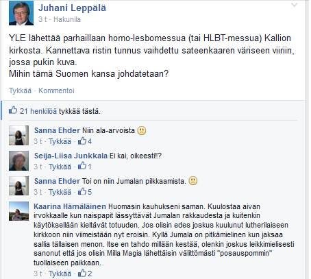 [url=http://www.hs.fi/datajournalismi/a1403922025191?jako=744fa82b8ea71d672062958386dcc9bf]Lukumäärältään ennätysmäiseen[/url] kulkueeseen huipentuneen [url=http://helsinkipride.fi/]Helsinki Priden[/url] kunniaksi haluan muistuttaa [url=https://www.facebook.com/vastustamme]Vastustamme sukupuolineutraalia avioliittoa -ryhmän kootut aivopierut[/url] -palvelun olemassaolosta. Kyseessä on Facebook-sivu, johon on koottu erään, [url=http://urbaanisanakirja.com/word/parodiahorisontti/]parodiahorisontin[/url] kauan sitten ylittäneen suljetun ryhmän…