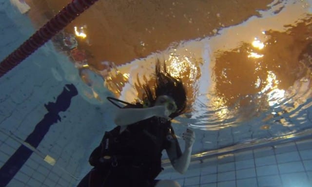 Sukeltaminen tuntui aluksi todella oudolta! Tunteeseen kuitenkin tottui, kun pääsi kunnolla veden alle. Minulla oli ollut flunssa, joten jouduin tasaamaan painetta aika usein, sillä korviani särki. Sitä siis teen videolla ja kuvissa, kun otan nenästäni kiinni.