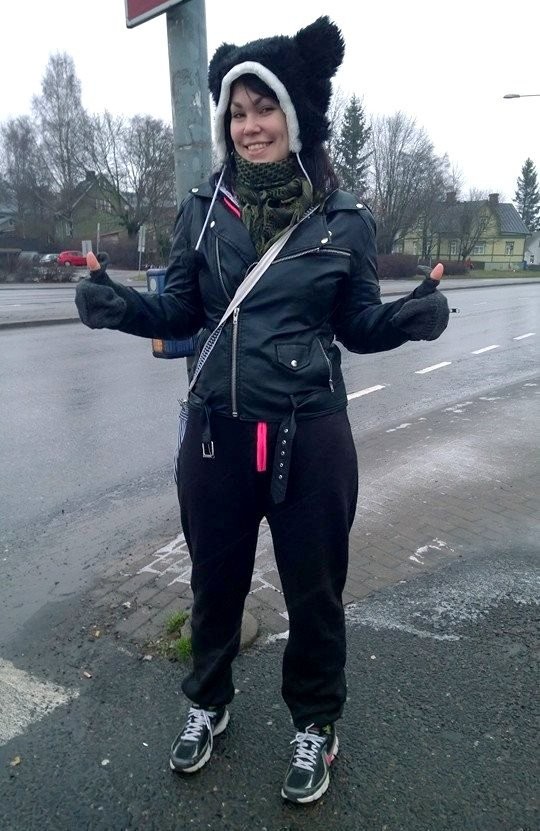Olen saanut kuunnella kettuilua ihanasta haalaristani. Siperianhusky pilkkasi minua ja sanoi, että se on maailman epäseksikkäin 🙁 Pikkusiskoni Sekopää ja Herneenverso valittivat, etteivät kehtaa tulla kaupungille kanssani, jos minulla on haalari. Laitoin sen ihan kiusallaan ja käyttäydyin vielä oikein nolosti – Luoja paratkoon, Helsingissä vielä! Itsenäisyyspäivänä lähdin tämän näköisenä Siwaan mieheni He-Manin kanssa: