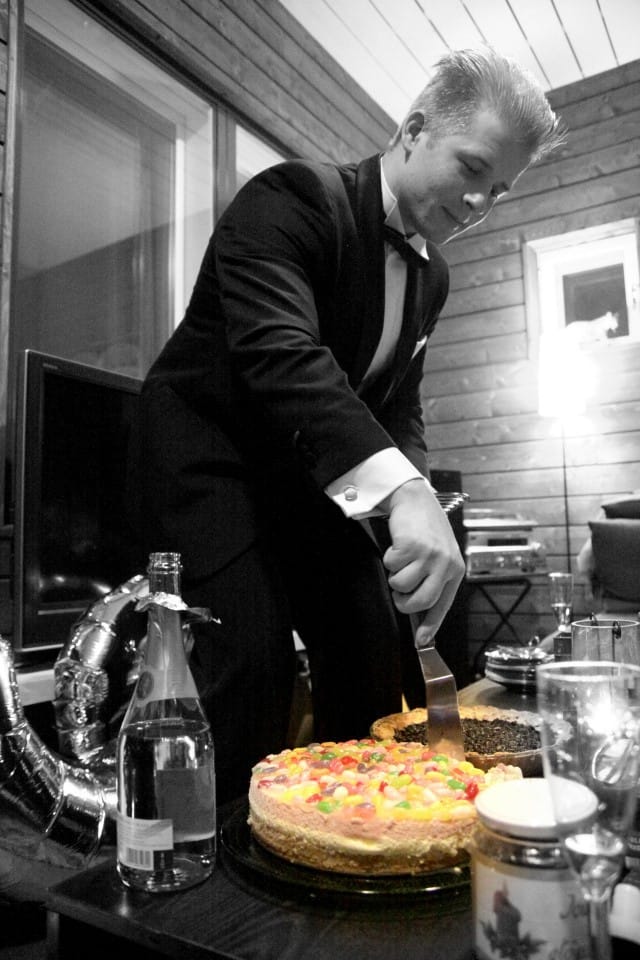 2.Yllätä päivänsankari![/b] Minun tapauksessani päivänsankarit oikeastaan osasivat jo aavistaa jotakin, mutta eivät todellakaan sitä, mitä olin heidän varalleen suunnitellut. Toisaalta päivänsankarit olivat insinöörejä, joten heidän ilmeensäkään ei värähtänyt, kun käskin heitä riisumaan vaatteensa. Toinen paistoi hirvenlihaa ja jatkoi ilmoitukseni jälkeen tyynesti sen paistamista! Olin kuvitellut, että he järkyttyvät ja rupeavat kenties haukkomaan henkeään. Kirkumista sentään en odottanut, koska kyseessä oli sentään kaksi miehekästä miestä. No, tahdon uskoa, että miehet olivat sisimmissään yllättyneitä.