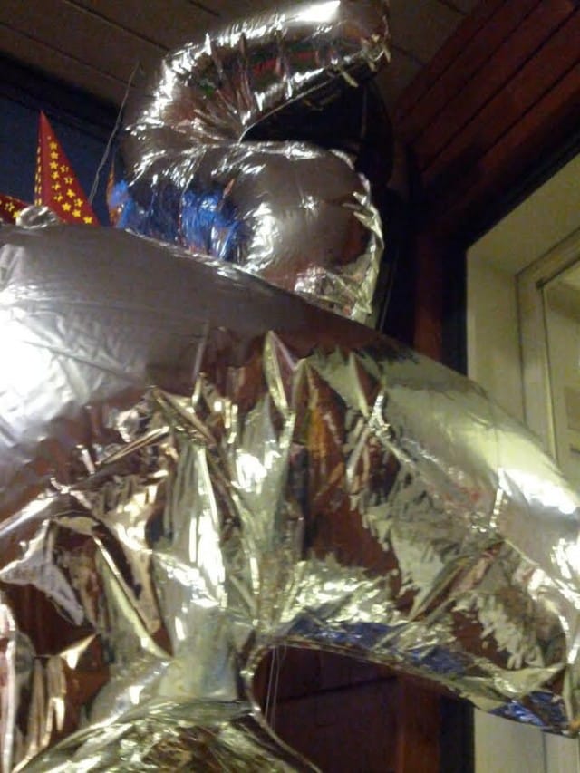 Kun miehet olivat vaihtaneet vaatteet, lähdimme meille. Siellä odottivatkin vieraat. Koska kyseessä oli kuitenkin glamöörit juhlat, olin ostanut kuohuviiniä ja foliopalloja. Kaikissa luksusjuhlissa pitää olla sellaisia! Lisäksi olin tehnyt molemmille omat kakut. HM haluaa aina synttäreilleen mustikkapiirakan, joten tein sellaisen. Ongin ovelasti selville VB:n lempikarkin ja tein siitä kakun – tarjolla oli siis Jellybean-kakkua 😀