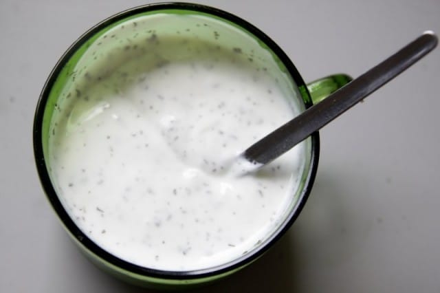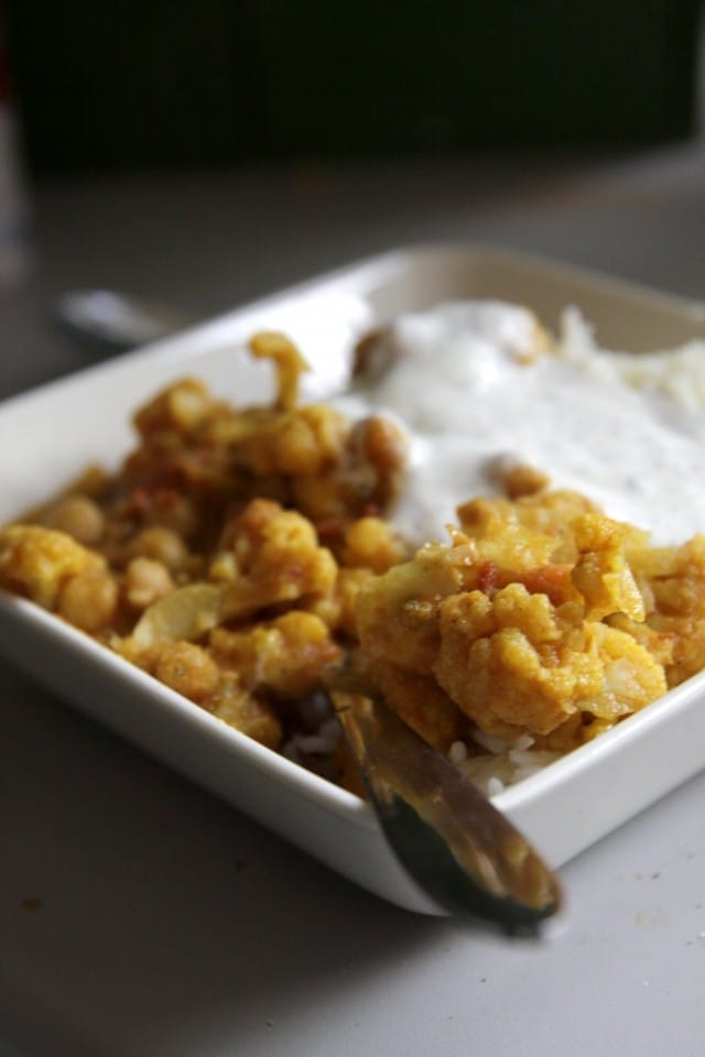 6. Teen yleensä kikhernecurryn lisäksi yksinkertaista ja varmaan hifistelijöiden mielestä vääränlaista jogurttikastiketta. Mutta hyvää se on ja helppo tehdä: sekoita haluamasi määrä kuivattua minttua maustamattomaan jogurttiin ja anna olla hetken jääkaapissa.