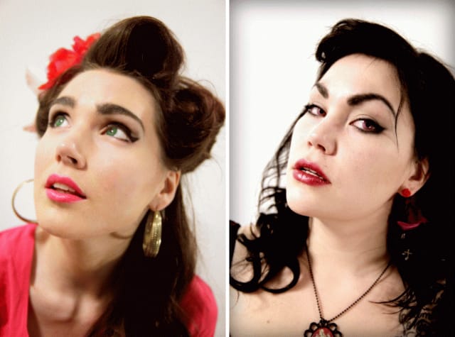 Huomaatteko katseessamme jotain hullua? Se ei ole pelkästään kuvitelmaa! Silmämme eivät kuitenkaan kiilu mielenvikaisuudesta, vaan piilolinsseistä. Siperianhusky on ottanut nimimerkkinsäkin ihanista vaaleansinisista silmistään, mutta nyt hän halusi kokeilla jotain uutta. Löysimme lauantain burleskikirpputorilta (avaamattomat) vihreät piilolinssit. Sopivat SH:lle nämäkin, vai mitä? 🙂 Koska MRV on aina matkimassa muita, hän laittoi Zombiewalkille hankitut vaaleanpunaiset linssit päähänsä. Olimme siis oikein kiilusilmäsiskokset!
