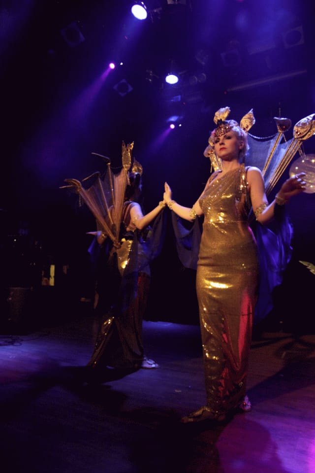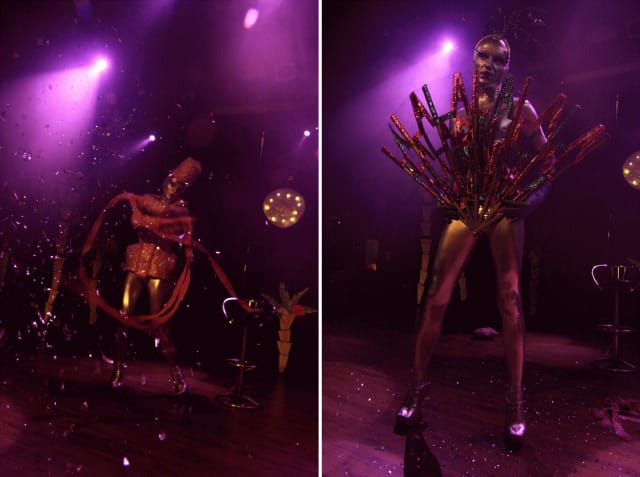 Saimme hyvät paikat eturivistä, joten pääsimme nauttimaan kaikin aistein glitteristä, tissihiestä ja savukoneen savusta.