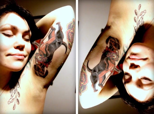 Minulla oli tatska-aika viime keskiviikkona. Kävin T[url=http://turkutattooparlour.com/]urku Tattoo Parlourissa[/url] ottamassa kuvan mäyräkoirasta. Koska olen kovis, olihan se pakko ottaa mahdollisimman hankalaan ja kipeään paikkaan. No mutta, äiti, olethan ylpeä tyttärestäsi, jolla on mustetta melkein kainalossa. No pussies here! Laitan kuvan tatuoinnista ihan kiusallani vasta postauksen loppuun. Siellä on myös arvonta, tittidii! Tiedättehän, lopussa kiitos seisoo. Olen luonteeltani hieman ilkeä ja epämiellyttävä.