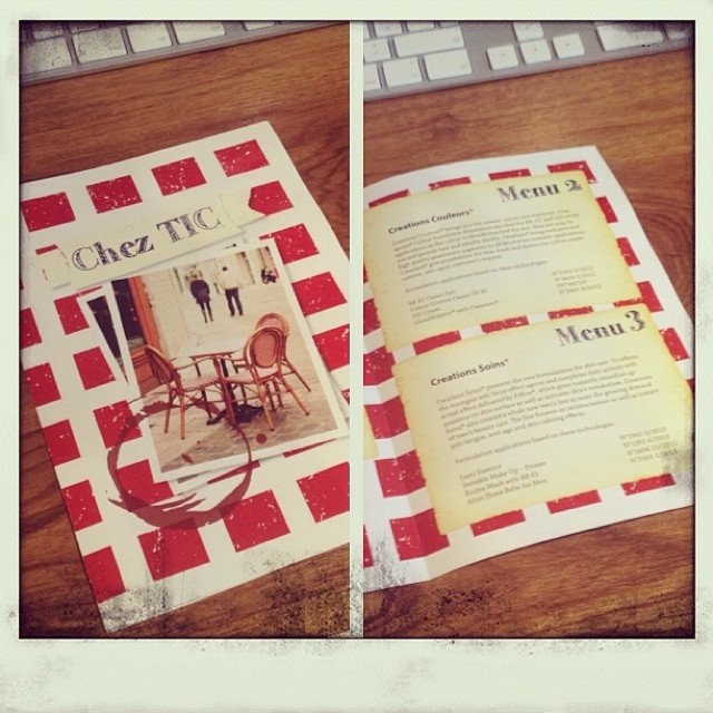 Tästä kuvasta saattaisi päätellä, että olen perustamassa omaa pikku-bistroa Pariisin laidalle, mutta en sentään. Olen maanantaina lähdössä kosmetiikkamessuille Goventryyn, Englantiin. Kyseiset messut keskittyvät raaka-aineisiin, formuloihin (ei niihin autokilpailuihin) sekä ylipäätään ainesosiin. Me ajattelimme perinteisen messuständin sijaan muuttaa pöytämme ranskalaisen bistron pöydäksi ja asetella tuotteemme lautasille.