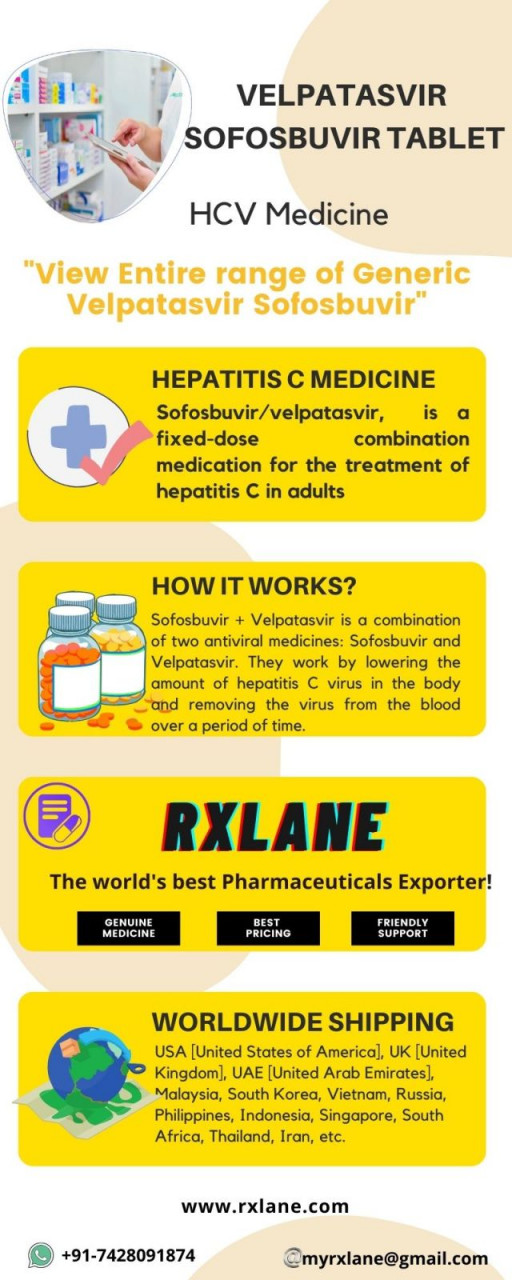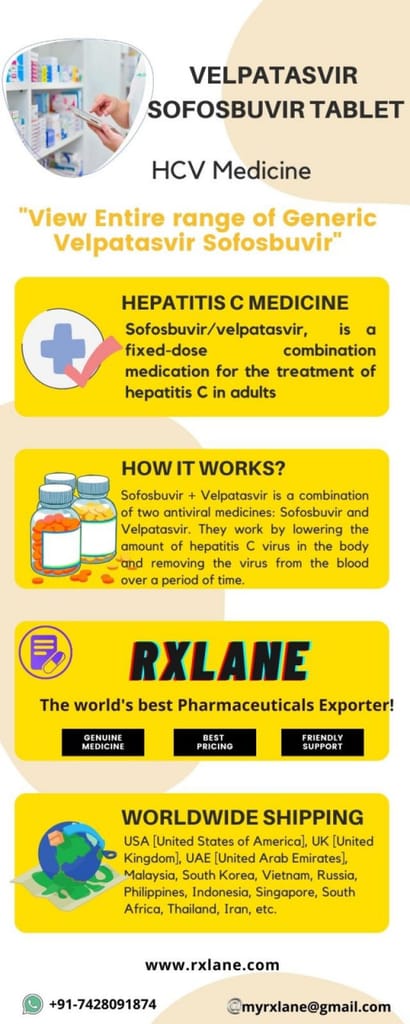 Learn more about the Generic Velpatasvir Sofosbuvir Brands that RxLane, a provider of hepatitis medication. RxLane is presently offering Generic Velpatasvir Sofosbuvir Tablet at a discount. To learn more about the price of Generic Velpatasvir Sofosbuvir Tablets from RxLane Wholesale Supplier, call +91-7428091874 now. In addition to the Philippines, Malaysia, South Korea, Vietnam, Russia, Indonesia, Singapore, South Africa, Thailand, and Iran [url=https://www.rxlane.com/sofosbuvir-velpatasvir-tablets-price-online]Generic Sofosbuvir 400mg Velpatasvir 100mg[/url] to The United States, the United Kingdom, the United Arab Emirates, and the United States of America are additional recipients of this shipment. Naga sa Camarines, Dagupan sa Pangasinan, Navotas, Malabon, Zamboanga City, Taguig, Antipolo, Cavite City, Tagbilaran, Davao City, Caloocan, Cebu City, and Zamboanga are among the Philippine cities that are included in the list.
