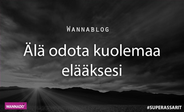 Kyllä, puhumme nyt kuolevista lapsista. Yleensähän ajatus on, että kun kuollaan, ollaan vanhoja. Että kyllä siihen ikään mennessä ehtii tehdä sitä ja tätä. Että sitten, kun jään eläkkeelle tai kun saavutan tämän etapin X, niin voin tehdä tuota tai tätä – tai ylipäätään olen vasta sitten haluamani asian arvoinen! Me ladyt voisimme listata tähän vaikka että en pistä bikineitä päälleni ennen kuin vaaka näyttää tiettyä kahden numeron sarjaa. Kesäkin tulossa!