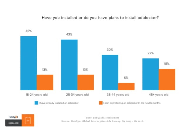 Mainostenesto-ohjelmat ovat jatkuvassa nousussa. Ad-blocker Plussaa oli vuonna 2015 ladattu jo 300 miljoonaa kertaa. Menetys markkinoijille oli 22 miljardia dollaria tuona vuonna. Samana vuonna 18-24-vuotiasta mainostenesto-ohjelma oli 46 %:lla, 25-34-vuotiaista 43 %:lla ja 35-44-vuotiaista 30 %:lla. Luvut ovat todennäköisesti kasvaneet tästä edelleen.