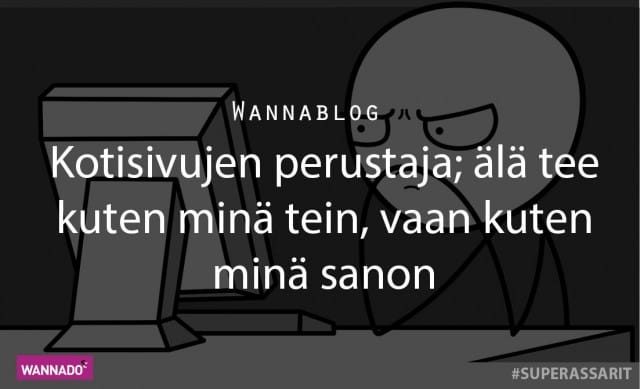 Yrittäjä, jonka aika on kallisarvoista: älä tee kuten minä ja ryhdy opettelemaan kaikkea alusta alkaen itse, vaan osta kotisivusi valmiina Wannadon #Superassareilta! Lupaan että säästät hermojasi ajan lisäksi.