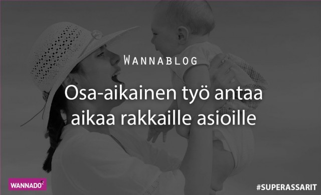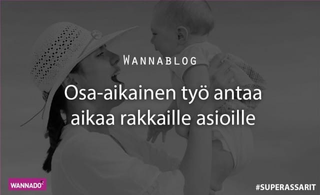 Teen töitä osa-aikaisena. Tämä on ensimmäinen kerta elämässäni osa-aikaisena, ja vaikka haussa oli kokopäiväinen työ, olen todennut, että tämä järjestely sopiikin minulle paljon paremmin. Olen niitä, joilla on aina miljoona…