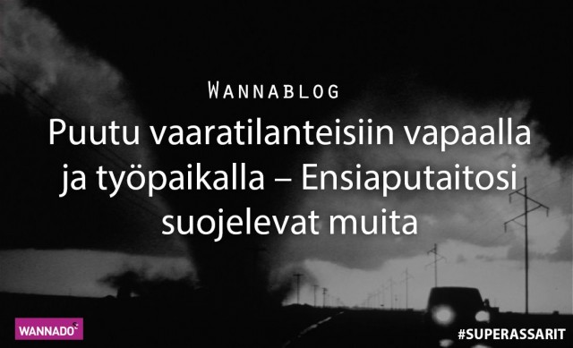 Tiesitkö, että työturvallisuuslain mukaan työpaikoilla on ylläpidettävä ensiapuvalmiutta? Siihen kuuluvat muun muassa asianmukaiset tarvikkeet ja välineet sekä ensiavun antamiseen perehtyneet henkilöt. Laki edellyttää tätä. Mielestäni meidän tulee – oli lakia tai ei – edellyttää ensiapuvalmiutta ennen kaikkea itseltämme. Äitinä, isänä, valmentajana, joukkueenjohtajana, purjeveneen kapteenina, melontaretken vetäjänä, kaverina, ohikulkijana.