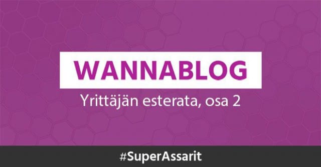 Viime viikolla startannut [url=https://www.city.fi/blogit/superassarit/yrittajan+esterata+kierros+1/132468]yrittäjän esterata[/url] on lähtenyt finaalikierrokselleen. Mitä on odotettavissa yrittäjäksi lähtiessään, että osaa valmistautua asioihin henkisesti, eikä saa slaakia, kun mahdollinen este tuleekin eteen, vaan mennä lähes heittämällä…
