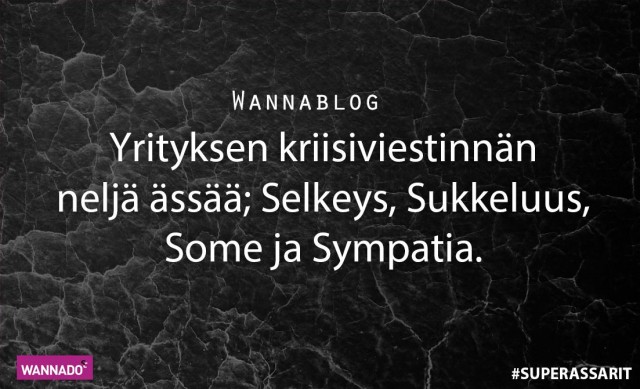 Yrityksen kriisiviestinnän neljä ässää; Selkeys, Sukkeluus, Some ja Sympatia