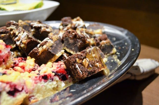 Huh, jälkkärille olisi löydettävä vielä tilaa. Kevyimmin pääsee hedelmillä, suklaan ystäville on tarjolla suklaakakkua ja vaahtokarkkeja joita voi dippailla suklaalähteeseen. Saisko sen kotiin mukaan?