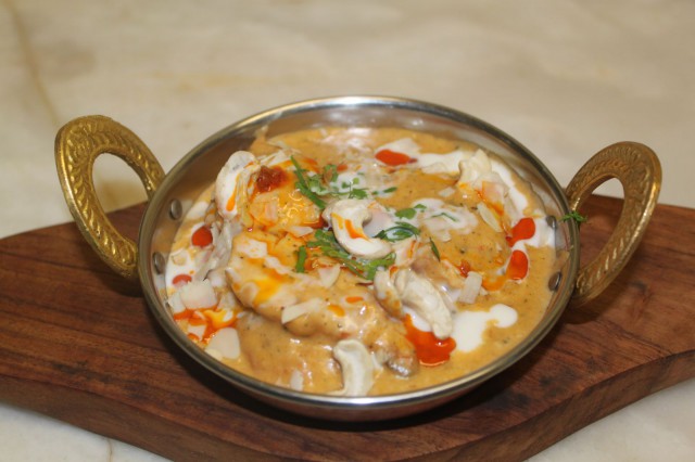 -Kukhurako Korma: haudutettuja kananfileepaloja ja tomaattia kermakastikkeessa.