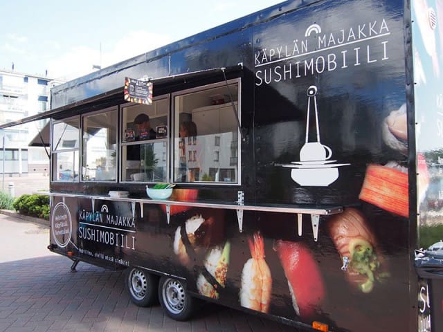 Käpylän Majakka on päättänyt ilahduttaa sushin ystäviä tänä kesänä myös liikkuvalla versiolla, Sushimobiililla. Sushimobiili on bongattu mm. Käpylän kyläjuhlilta, Ruisrockista ja olutravintola Solmun edustalta. Ainakin [url=https://www.facebook.com/pages/K%C3%A4pyl%C3%A4n-Majakka/682942538490468?fref=ts]Facebook-sivullaan[/url] Majakka ilmoittaa mobiilin tulevan “toivottavasti” kesän mittaan myös muihin tapahtumiin ja asuinalueille.